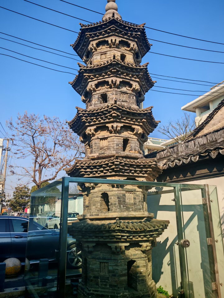 直到站在跟前,你会觉得这玩意儿也算塔?高不到7米,通体清水砖,没任何装饰,朴素得有点寒酸。
